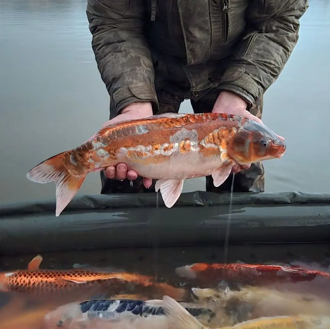Une des 11 koïs, sélectionnées parmi le gros lot de poissons arrivé récemment à Rivalais 2, qui a rejoint le Domaine 😎